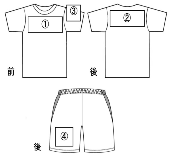 ➀ユニフォームシャツの前面1か所(300平方センチメートルを超えないサイズ)