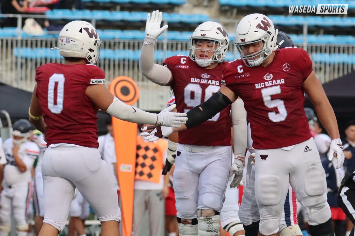 慶大に先制を許すと、その後も厳しい時間が続く。1ポゼッション差で迎えた後半、QB船橋のTDでついに流れを引き寄せる。守備陣も粘り、無傷の5連勝を飾った#sousupofootball #BIGBEARS #早稲田 #アメフト #football #waseda #熱狂 pic.twitter.com/vcDrxcZkR7