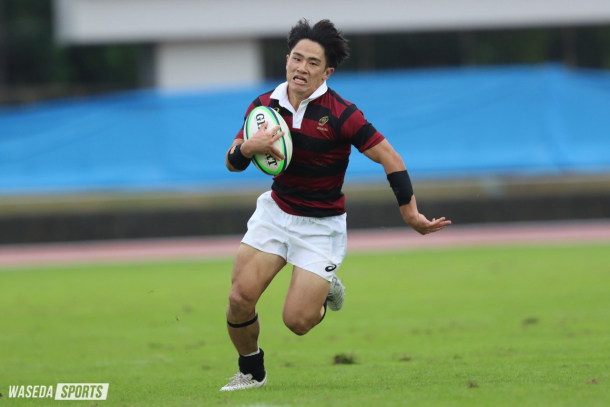 関東大学対抗戦(対抗戦)全勝優勝が懸かる中、迎えたのは夢の島競技場での青学大との一戦。前半開始から接点の激しさが見られる試合展開の中、WTB山下恵士朗(スポ2=早稲田佐賀)、WTB田中健想(社2=神奈川・桐蔭学園)が大外からまくる展開が続き39ー7でファーストハーフを終える。後半も早大が先制点を挙げ、勢い止まらぬままにHO清水健伸(スポ3=東京・国学院久我山)がトライラインにボールをねじ込んだ。フレッシュな面々の活躍も光る中、試合終盤にダメ押しのモール成功。青学大戦は59ー12で早大に軍配が上がった。→続き・コメントを読む