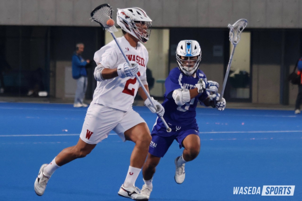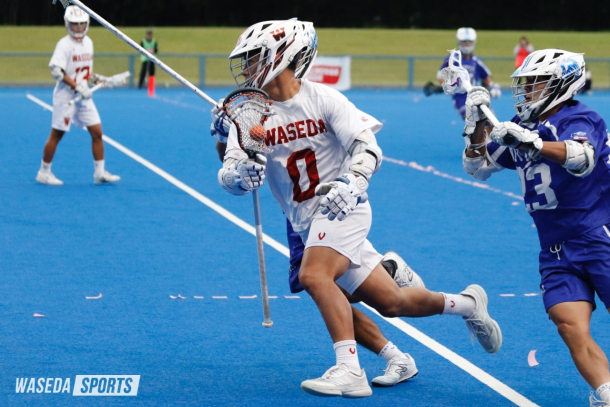 関東学戦リーグ戦では見事な戦いっぷりを見せた野澤組。次はいよいよ関東4強、FINAL4の戦いだ。勝ったら全国、負けたら終わりの一発勝負。野澤組の真価が試されるこの大一番、早大はBブロック2位の日体大と激突した。大勢の観衆が固唾を飲んで見守る中、早大が最初の攻撃を仕掛ける。第1Q(クオーター)のフェイスオフに競り勝つとそのままボールを巧みに回し、1分もたたずに先制点を決める。その後もオフェンス陣の勢いは止まらず、前半だけで8得点。これまでにない大幅リードを広げるが、後半は前半と打って変わって日体大のペースとなる。第3Qでじわじわと点差を詰められるも、ここでAT花井コルトンヘイズ(国教4=アメリカ・マッキントッシュ)の連続攻撃が炸裂。力強いボールでネットを揺らし、チーム得点を目標とする10点台に乗せた。最終第4Qでは相手も追い上げを見せ、10-7まで点差を縮められる。それでも残り5分からは得点を許さず、チーム一丸となって相手の攻撃を阻止する。最後は張り詰めた空気を包み込むかのように試合終了のホイッスルが鳴り響き、チーム全員で勝利の喜びを分かち合った。→続き・コメントを読む
