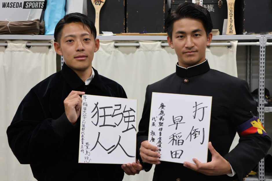 稲穂祭・早慶戦直前特集として歴史・伝統ある両部を率いる早稲田大学応援部・豊島悠代表委員主将兼連盟常任委員(教4=神奈川・桐蔭学園)と、慶應義塾体育会應援指導部・枝廣二葉代表(4年)のお二人に早スポ・ケイスポ合同でお話を伺った。早スポでの早慶主将代表対談は5年ぶりとなる。→続きを読む