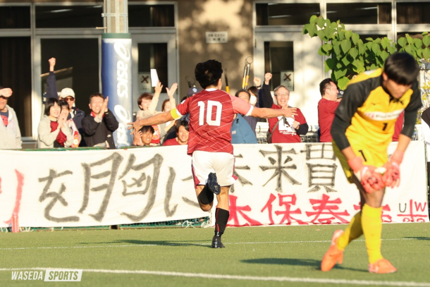 4月に開幕した関東大学サッカーリーグ戦もついに最終節。前節に痛恨の敗戦を喫し2部リーグ優勝の可能性は潰えてしまったが、最終節の勝利で自動昇格の可能性は繋げられるという状況での一戦となった。ア式蹴球部(ア式)の最終節の相手は神大、今シーズンの開幕戦で対戦し2点差をひっくり返しての勝利をつかんだ相手だ。前半をスコアレスで折り返したア式だったが、後半に入りMF山市秀翔主将(スポ4=神奈川・桐光学園)とMF本保奏希(スポ4=JFAアカデミー福島U18)のゴールで勝ち点3を獲得。他会場の結果により2位に順位を上げて1部リーグ昇格を決めた。→続き・コメントを読む