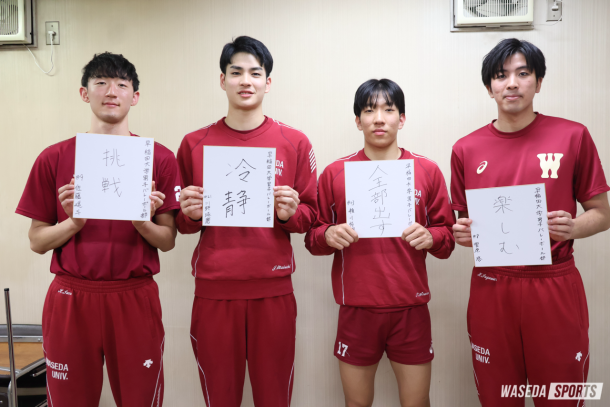 全日本インカレ前対談第3回は徳留巧大、布台聖、中上烈、ローゼンマーク有廉ジュニアの4名にお話を伺った。それぞれ一緒にコートに立つメンバーも多い中、それぞれに感じることや4年生への思いを伺った。→続きを読む
