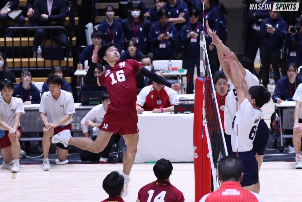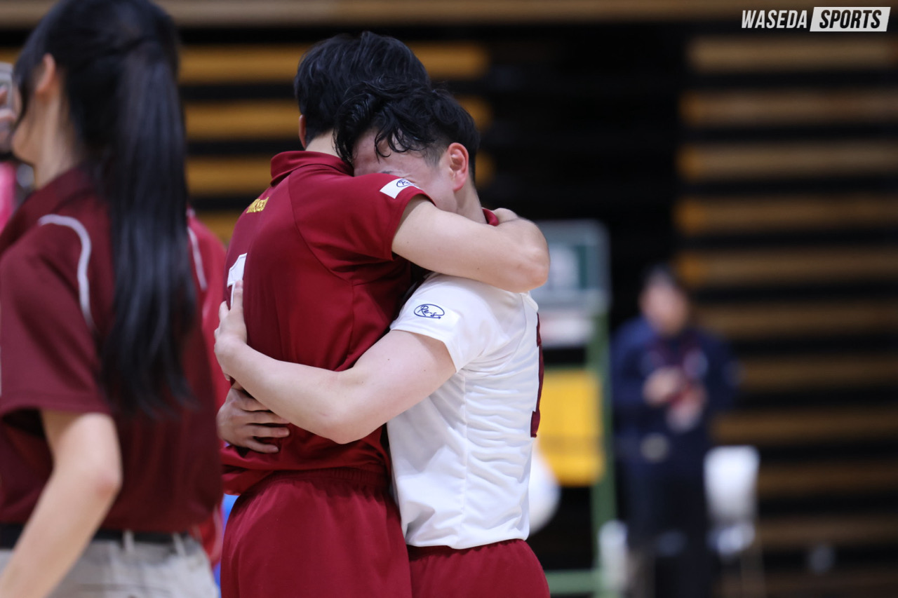 全日本大学選手権(全日本インカレ)決勝。1年間足掻いて、もがいて、悩み続け、努力を怠らなかった彼らにとって最高の舞台、センターコートでの試合だった。たくさんの観客が見守る中、対するは国士舘大。前日の準決勝では甲斐(専大4年)率いる専大を倒し、勢いのあるチームとの対戦となった。序盤こそ雰囲気に呑まれ崩されたものの、今までやってきたことをこなしていくことでリズムを掴んだ。最後は4年生がコートに立ち、感動のフィナーレを迎えた。セットカウント3ー0(25ー20、25ー18、25ー20)でストレート勝利を果たし、今大会すべての試合を失セット0で終え、無傷の優勝となった。→続き・コメントを読む