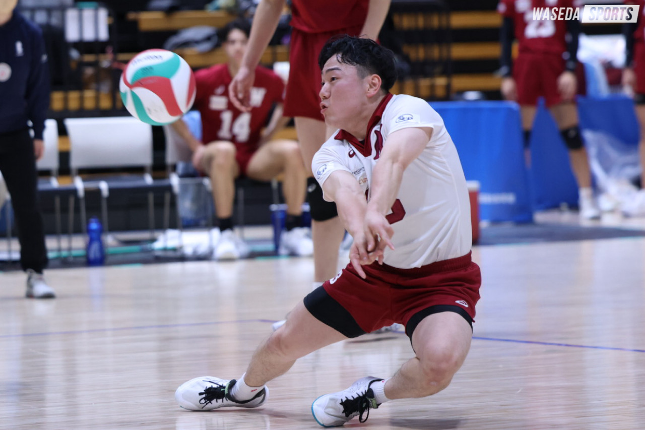 レシーブをするリベロ布台聖(スポ3=東京・駿台学園)