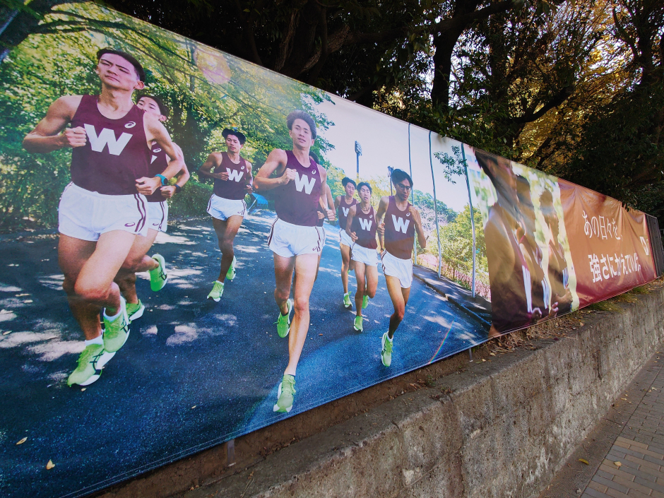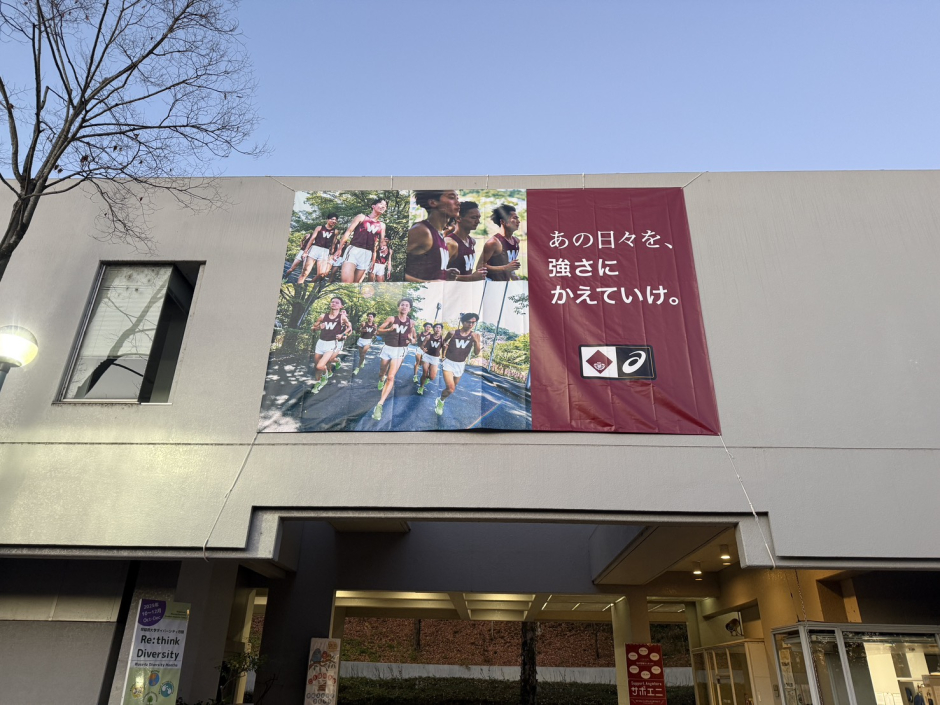 2026年1月2日から3日にかけて行われる東京箱根間往復大学駅伝競走(以下、箱根駅伝)。その大一番に挑む競走部を応援しようと、早稲田大学競技スポーツセンターはアシックス社と共同で、大型横断幕を早稲田キャンパスと西早稲田キャンパス、所沢キャンパスに設置しました。設置期間は1月31日まで。