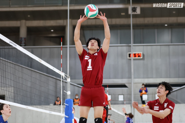 天皇杯ファイナルラウンド2回戦、早大はアイシンティルマーレ碧南(アイシン)と対戦した。Vリーグチームの高い壁に苦戦し1、2セットを落としたが、第3セットはこちらがペースをつかんで奪取する。しかし、競った展開をものにできず、4セット目を落とした。セットカウント(24―26、23―25、25―22、23―25)で敗北を喫し、1年半に及んだ前田主将体制が終了した。→続き・コメントを読む