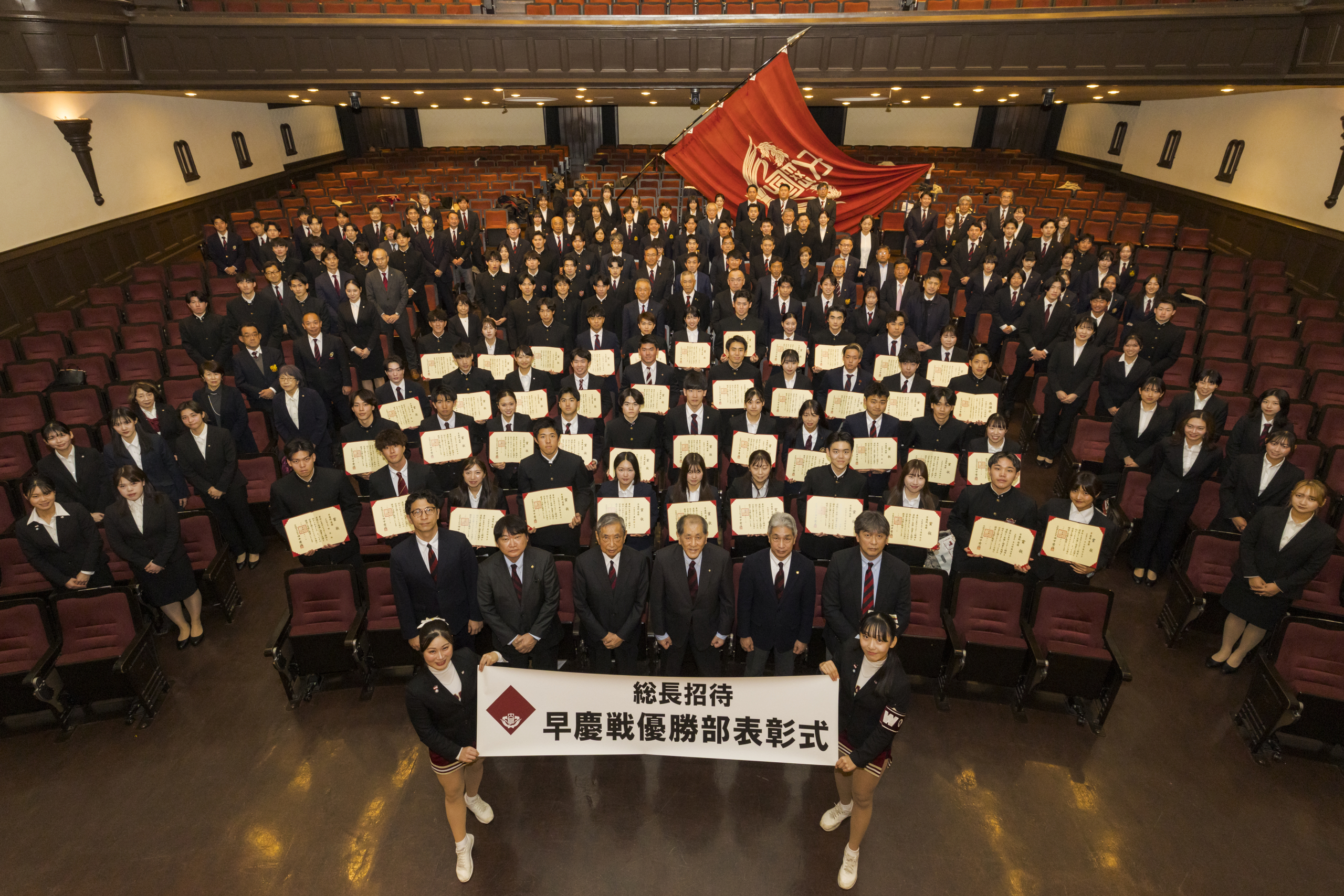 12月21日「2025年度総長招待早慶戦優勝部表彰式・祝賀会」が開催されました。同表彰式・祝賀会は、早稲田大学総長が当該年度開催の早慶戦で勝利した部(部門)を招待し、その栄誉を称えるもので、今回で14 回目の開催となります。