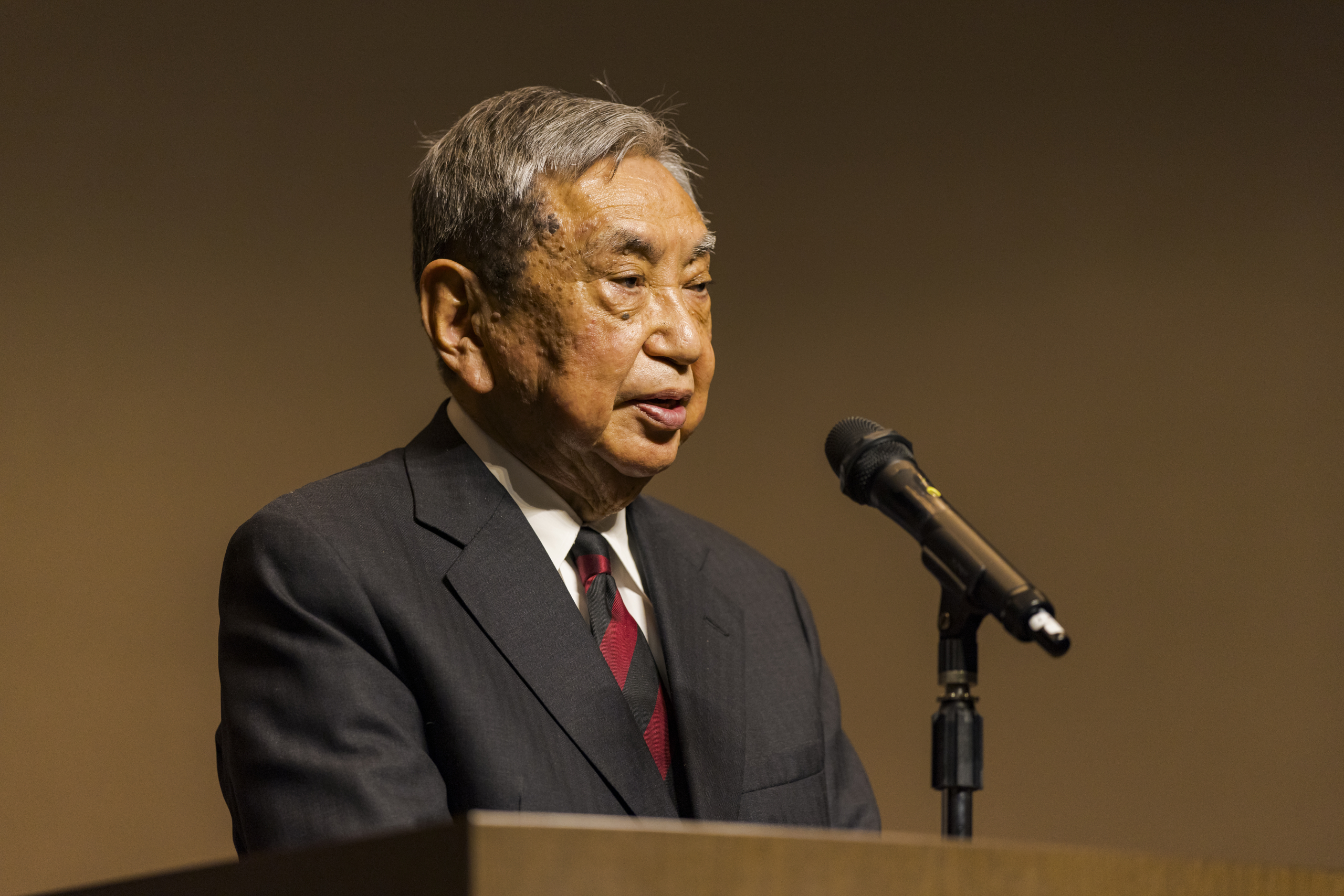 祝辞を述べられる 稲門体育会 河野洋平会長