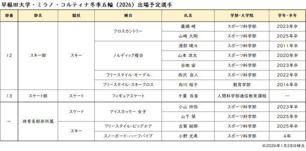 ミラノ・コルティナ冬季大会に臨む早稲田大学 在学生・校友への温かいご声援をどうぞよろしくお願いいたします。