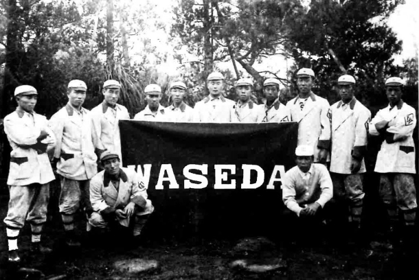 第2回米国遠征直前の野球部。後列右から4人目が三神吾朗(『稲門倶楽部 100 年』より)