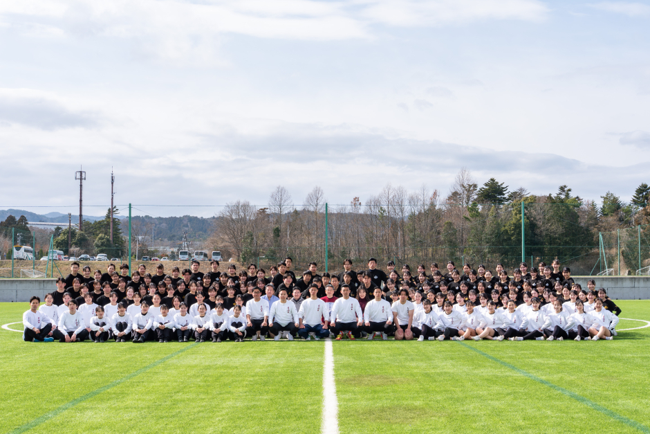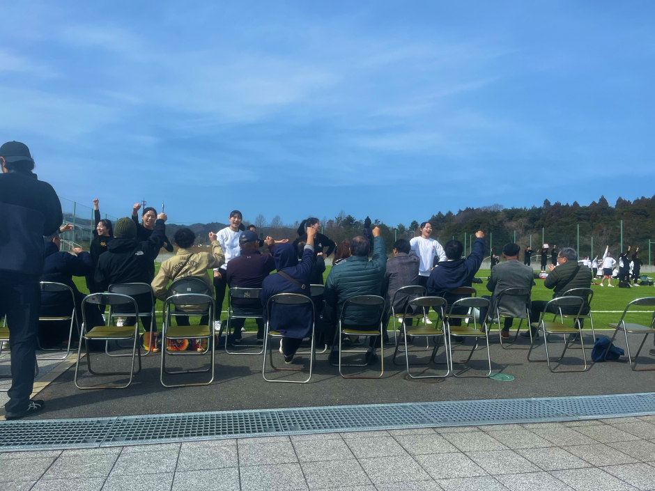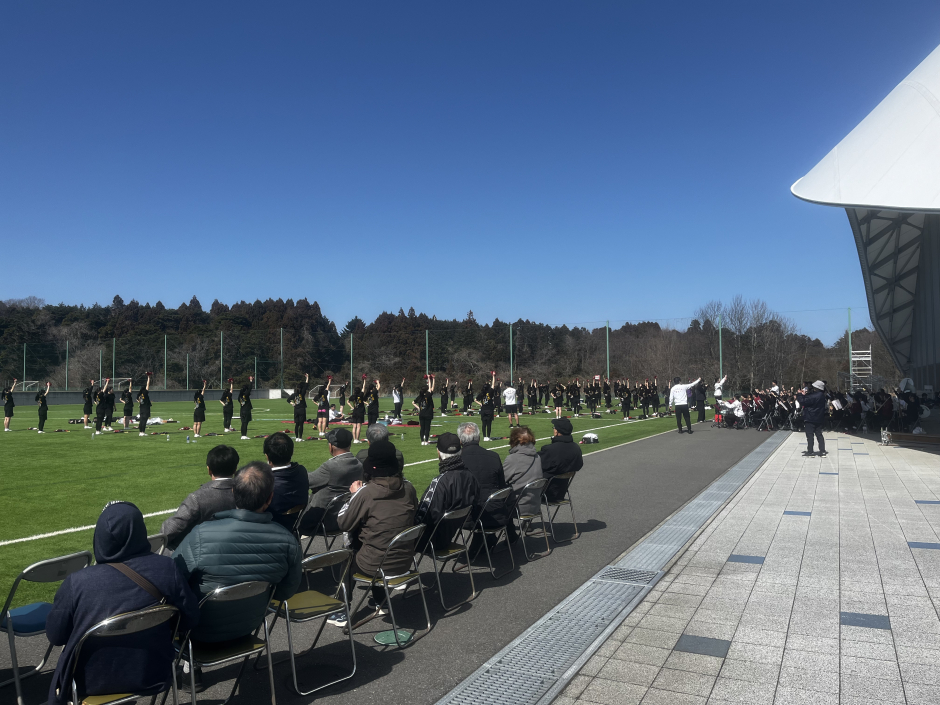 《応援部》が福島県楢葉町・広野町のJヴィレッジで行った春季合宿で、地元住民の方に向けて公開練習を実施