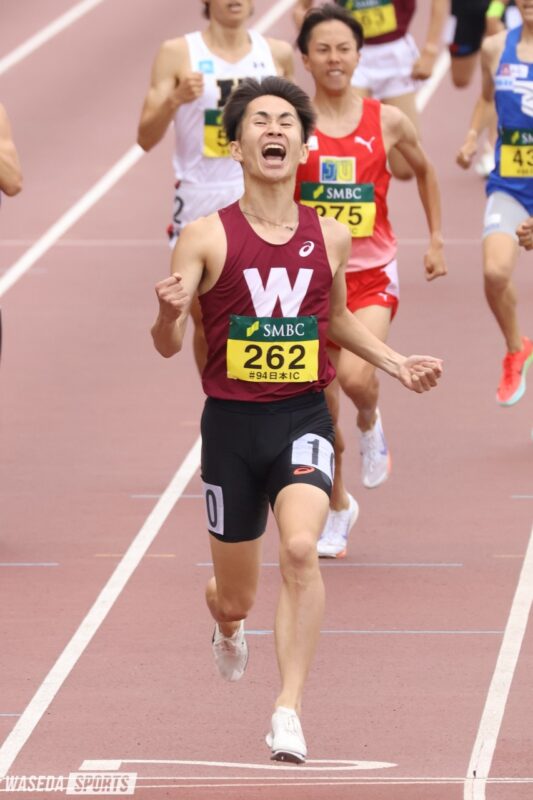 4年時の日本インカレ1500メートルにてトップでゴールする山口智