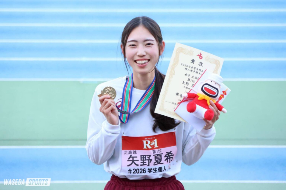 今年もレモンガススタジアム平塚にて、日本学生個人選手権(学生個人)が開催された。大会1日目には、日本学生対校選手権(日本インカレ)1万メートル決勝が行われ、山口竣平(スポ3=長野・佐久長聖)が1位、吉倉ナヤブ直希(社3=東京・早実)が3位を獲得。また、大会2日目の女子走高跳では、矢野夏希(スポ4=愛知・時習館)が東京六大学対校(六大学)に続き、優勝を果たした。来たる関東学生対校選手権(関東インカレ)に向け、大きな糧を得る大会となった。→続き・コメントを読む