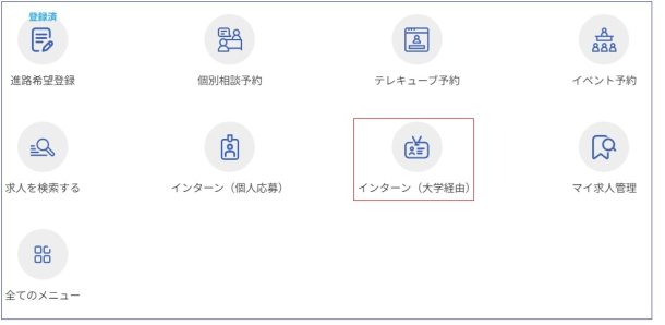 MyWASEDAにログイン→「学生生活」→「キャリアイベント・相談予約求人紹介等」から機関ごとの情報を参照できます。※詳しい操作方法はマニュアルをご確認ください。
