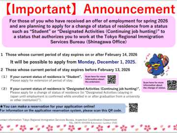 Announcement from Tokyo Regional Immigration Services Bureau ~Expected graduation: March 2026~