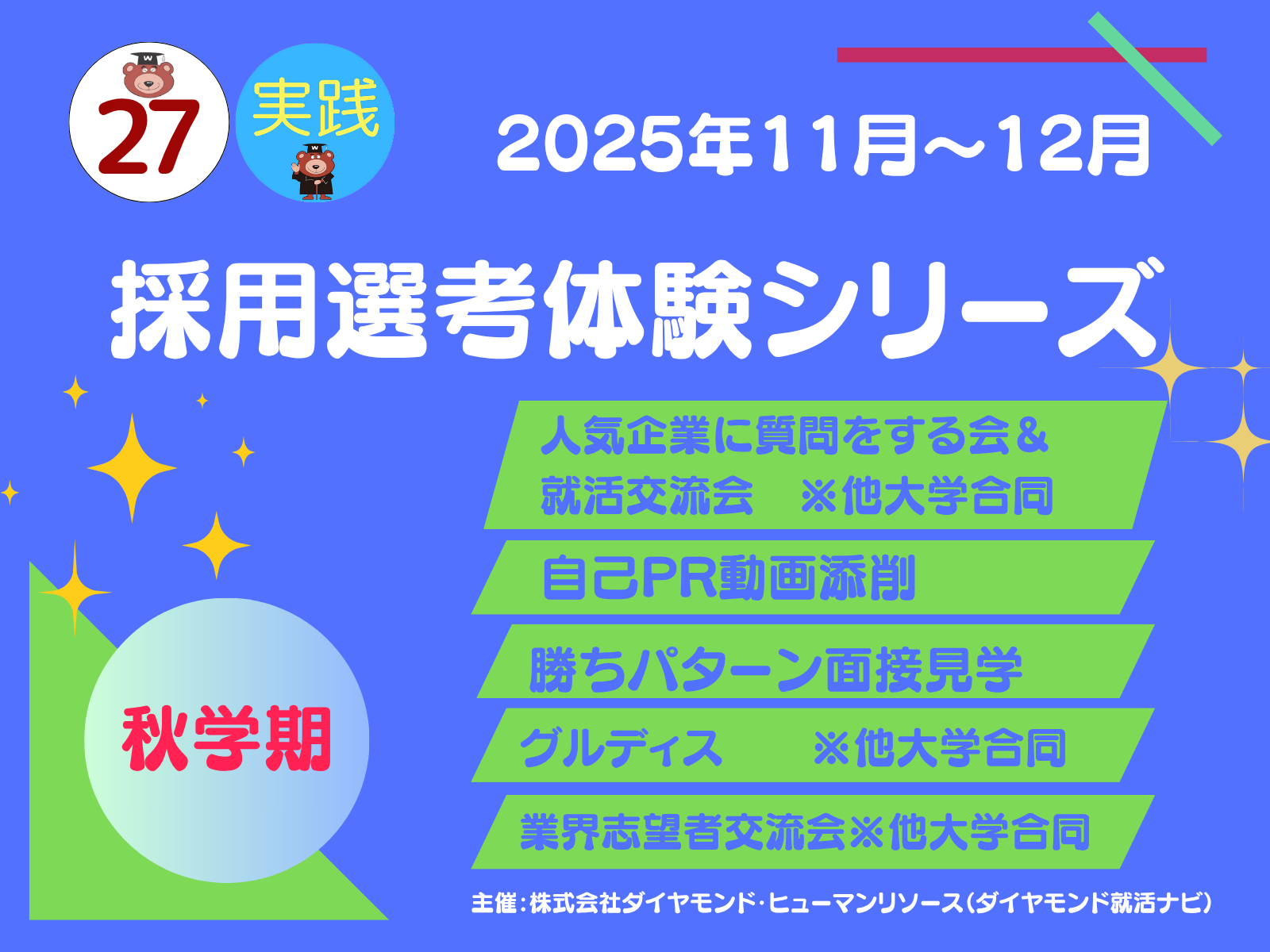 詳細:<27卒>(2025年秋学期開催)採用選考体験シリーズ – 早稲田大学 キャリアセンター
