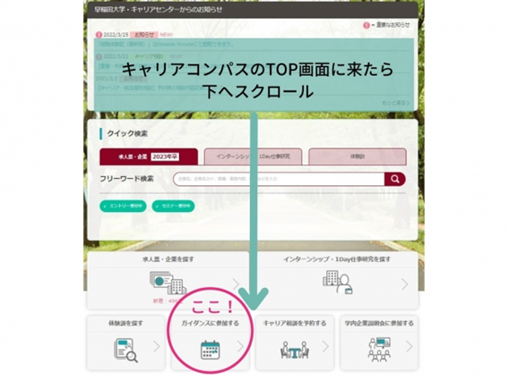 ①My waseda のキャリアコンパスにログイン