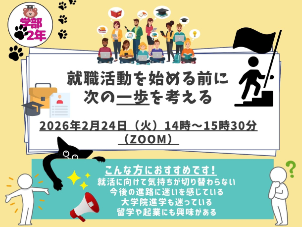 ※申込みされた方は「キャリアコンパス内のイベント予約MENU」→「予約した行事を確認する」にて当日Zoom URLを確認できます