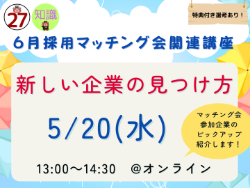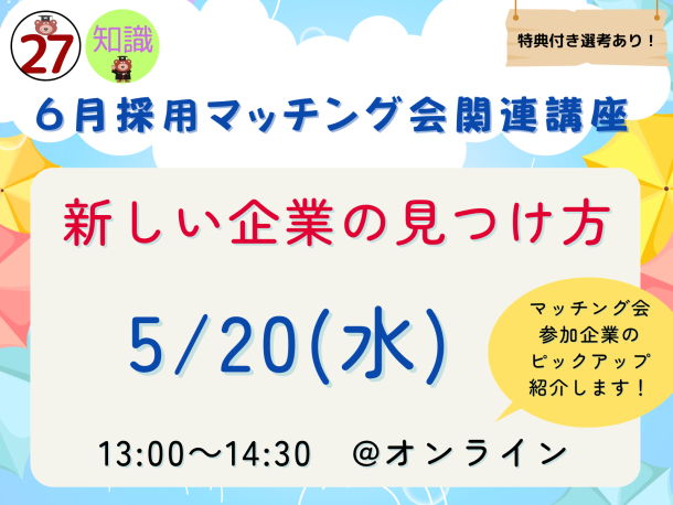 ⇒<27卒>【5/20】新しい企業の見つけ方(6月採用マッチング会関連講座)