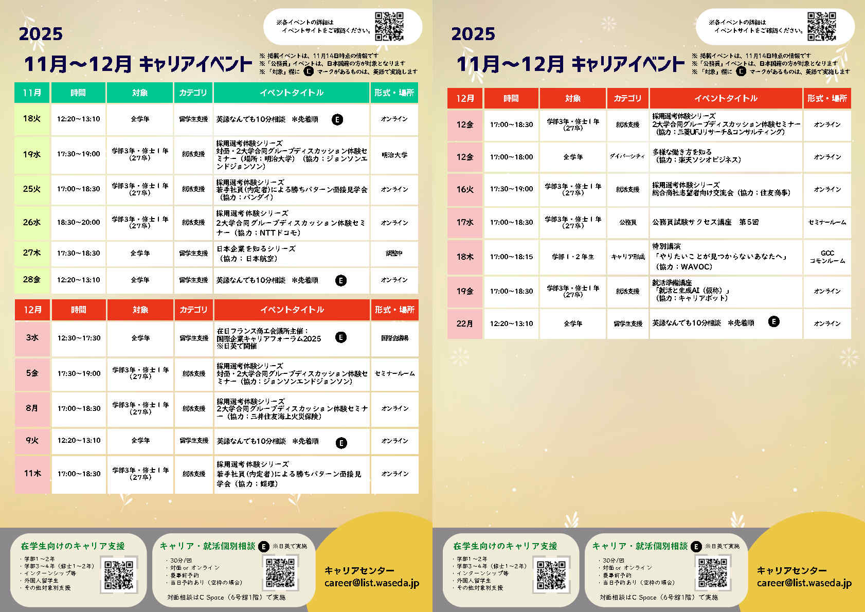 <公務員>【11/11-14】公務員フェア2025 in Waseda ~国家と地方、二つのフィールドから公務員の仕事を学ぶ~ ※公務員卒業生登壇!