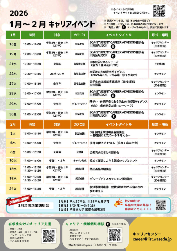 <27卒>【2/3】3月合説直前講座 ー基礎固めと次の一手を考える-(早稲田大学 合同企業説明会&業界・企業研究フェア2026)