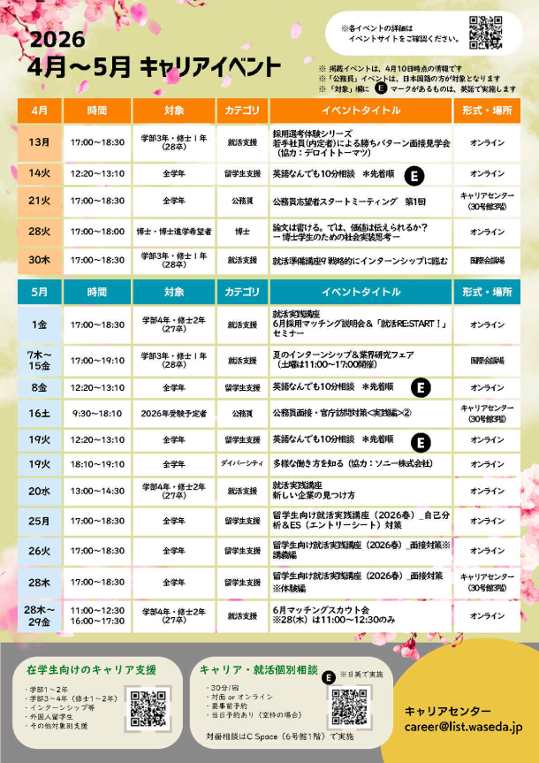 <学部1年・2年>【4/8】早稲田だからできる! キャリアスタートガイダンス(春)~Design your future~