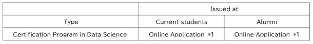・Students who wish to acquire certification from the Data Science certification System have to submit an “Application for certification” in addition to registering for courses.