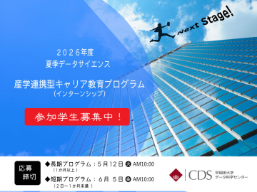 またデータ科学は実際のデータを活用する経験が大変重要です。そのため本プログラムでは提携企業における教育的インターンシップやデータサイエンスコンペティションなど、実際のデータを用いて「データ科学を実践する」機会を提供します。