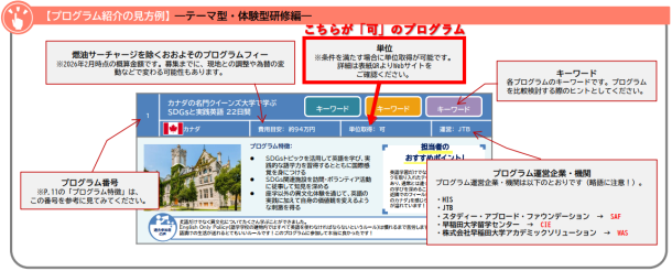 ・プログラム内容や申請方法について:プログラム主催企業・団体(短期留学プログラム(テーマ型/体験型研修:協力会社・機関主催)ページ参照)