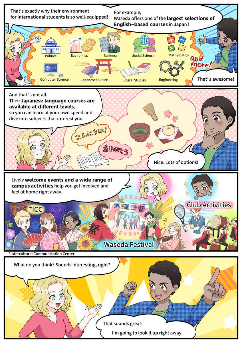 Enjoy reading this manga depicting the experience of studying abroad at Waseda University!