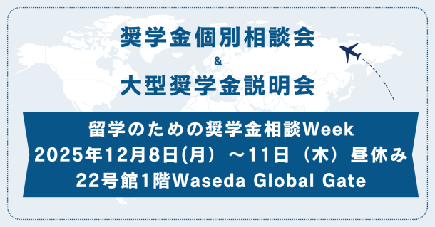 ※留学奨学金担当職員への相談は随時22号館4階の対面、メールで可能です。上記日時に参加できない場合は、開室時間(平日10:00-16:00)に来室ください。予約を取りたい場合は、[email protected]まで、事前にご連絡ください。