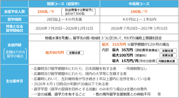 • 留学先国・地域における留学開始日が 2026年7月20日(月・祝)から2026年12月31日(木)までの間である計画