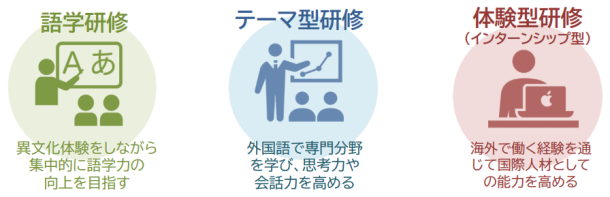 語学研修だけでなく、テーマスタディやインターンシッププログラム等、19か国、47プログラムについて募集します。