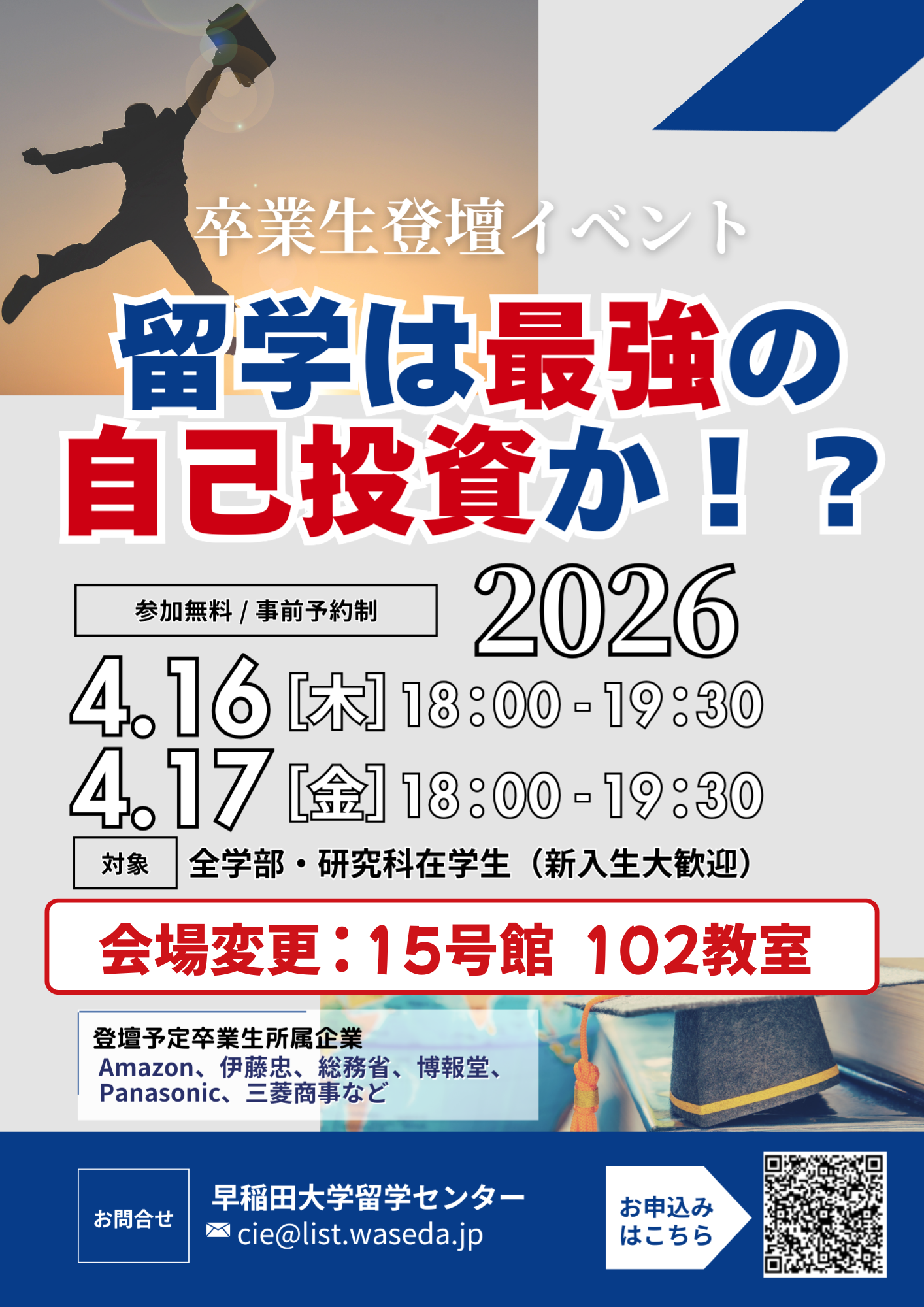 予約不要、参加費不要、入退場自由、学生証をご持参ください