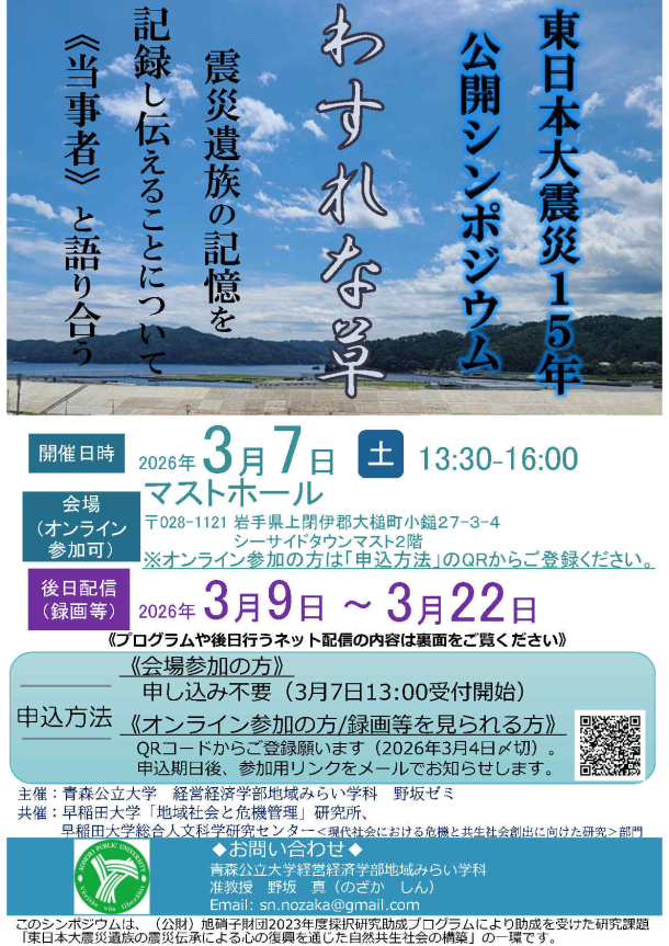 - 主 催:青森公立大学 経営経済学部地域みらい学科 野坂ゼミ