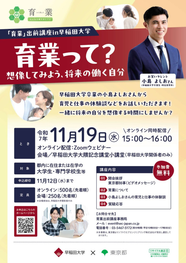 (終了)【11/19開催・事前申込】「育業」出前講座 in 早稲田大学(講師:小島よしお氏)