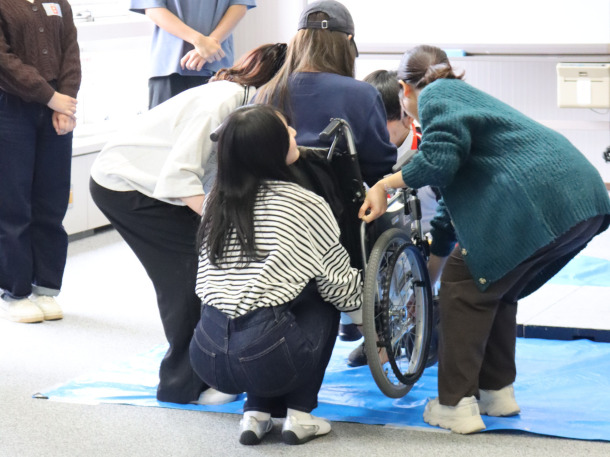 • 車椅子の実物を扱うことが初めてだったので、扱い方から乗った間隔まで体験することができたことがよかったです。視覚障がいの方の誘導に入り色んなパターンがあることが少しですがわかりました。実践の経験を積みたいと思います。
