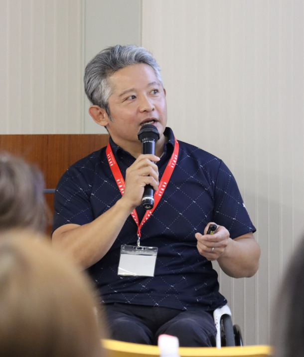 高校3年時にバイク事故で脊髄を損傷し車椅子生活となったこと、そこから車椅子陸上を始め2度のパラリンピックに出場したこと、現在はパラ陸上選手の支援と後進の指導に尽力していること、などの実体験を語っていただきました。
