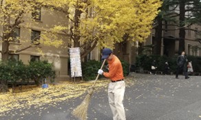 この時期は落ち葉の清掃作業が大変なのですが、一人でなんとかしようとせず、仲間と協力し合いながら進めていくように心掛けています。(佐藤さん)