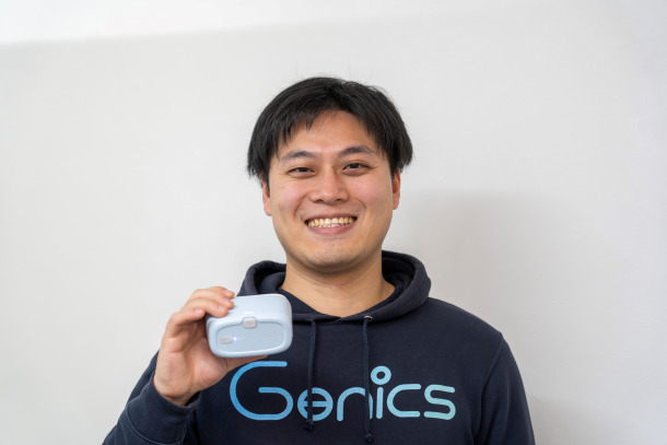 本プロジェクトを率いてきたのは、当時早稲田大学の大学院生としてロボット研究に取り組んでいた、株式会社Genics 栄田源 CEOです。研究開始から10年、JST(科学技術振興機構)の大学発新産業創出プログラムへの採択など、研究の深化と実績を積み重ねて小型化を実現し、ついに一般販売という形で社会に届けられることになりました。