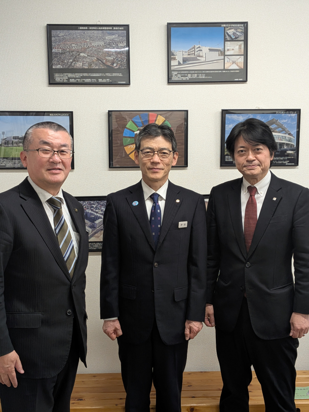 2026年3月16日、埼玉県庁にて、本庄市・吉田信解市長、埼玉県都市整備部・伊田恒弘部長、早稲田大学・井上文人常任理事が面会し、本庄キャンパスに関する今後の利活用などについて意見交換を行いました。早稲田大学としては今後もキャンパスの利活用を進めるとともに、地域との連携も深めていきます。