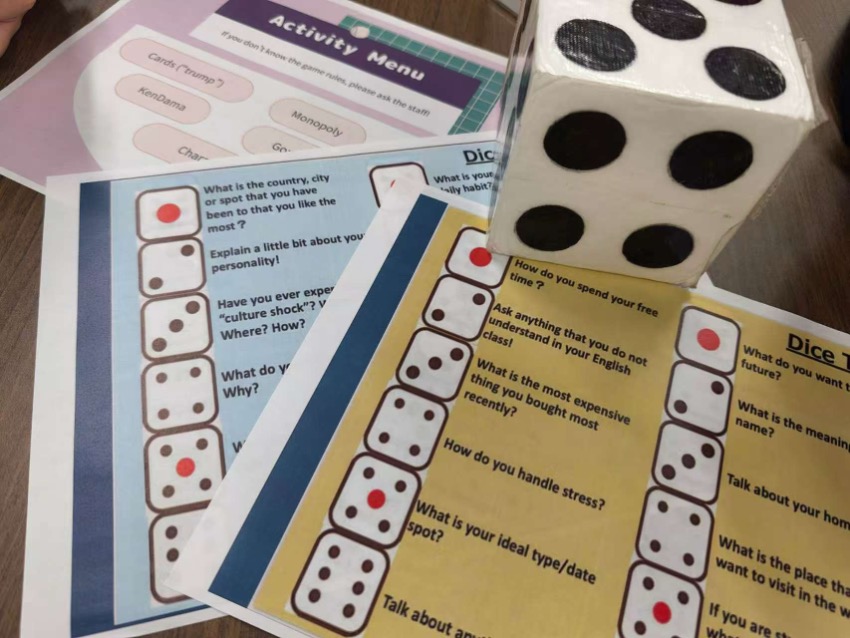 会話の内容に困った時は、ICCが用意してくれている「Dice Talk」というツールが役立ちます。サイコロを振って話題を決めるのですが、特に「自分の名前の意味」というテーマでは、互いの名前の由来や発音を知ることができ、とても盛り上がりました。また、「日本が好きな理由」という話題では、留学生の視点と日本人の視点が重なり、日本の魅力を再発見することができました。