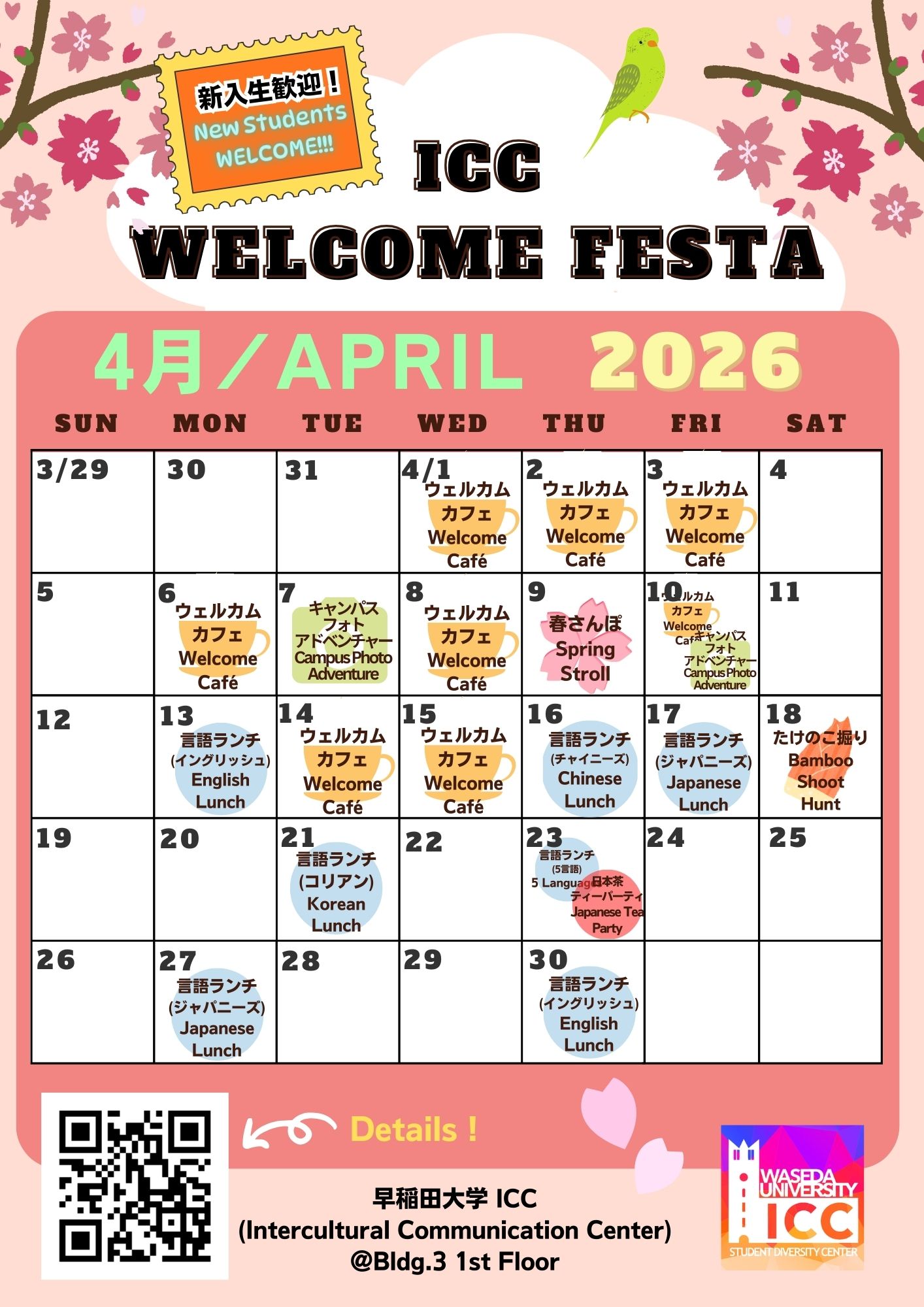 ICCでは4月入学生を歓迎する「ウェルカム・フェスタ」を開催します。