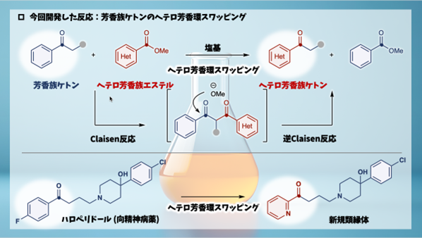 芳香族ケトン、ヘテロ芳香族、分子編集、Claisen反応、逆Claisen反応、医薬品化学、骨格変換、合成化学、構造多様化、創薬
