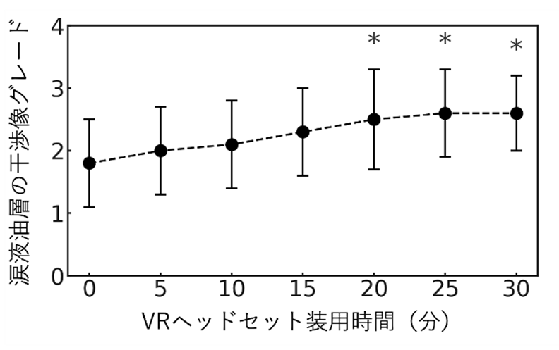 図3:VRヘッドセット装用中の涙液油層の干渉像グレードの経時変化