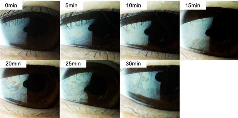 図2:VRヘッドセット装用中の涙液画像の一例