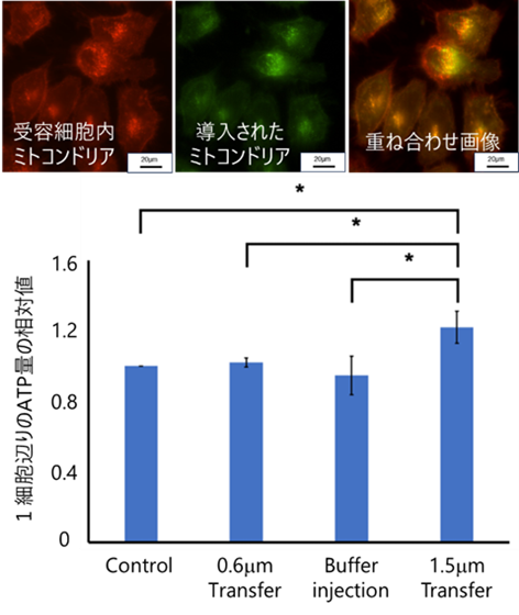 この結果は、単なる細胞内液の移送では細胞機能の改善は起こらず、機能性オルガネラであるミトコンドリアそのものを移送できた場合にのみ、細胞機能の向上が実現されることを示しています。