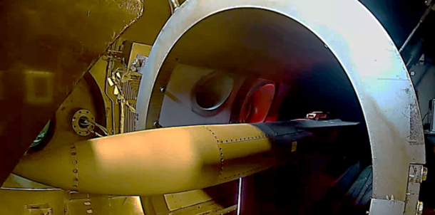 ① 極超音速実験機の燃焼実験(試験設備でマッハ5飛行状態を模擬)ⒸJAXA
