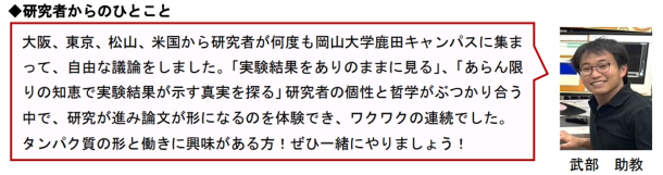 本研究は、独立行政法人日本学術振興会(JSPS)「科学研究費助成事業」(若手・JP23K14519研究代表 沖 大也; 基盤C・JP23K06545研究代表 松下 治; 基盤C・JP24K10218研究代表 河原 一樹)、日本医療研究開発機構(AMED)「生命科学・創薬研究支援基盤事業(BINDS)」(JP22ama121003)、乳酸菌研究会助成金(2023, 2024研究代表 松下 治)、National Science Foundation (grant 2218054, 研究代表 Joshua Sakon)の支援を受けて実施しました。また、論文掲載に当たり、the University of Arkansas Libraries Open Access Publishing Fundの支援をいただきました。